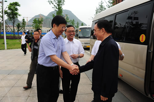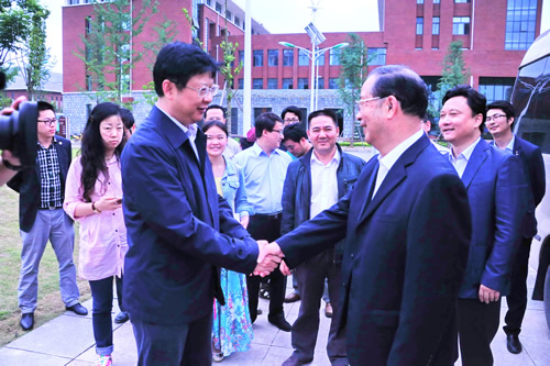 2014年6月,中共中央政治局原常委、中纪委原书记贺国强(右)莅临我校视察。