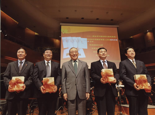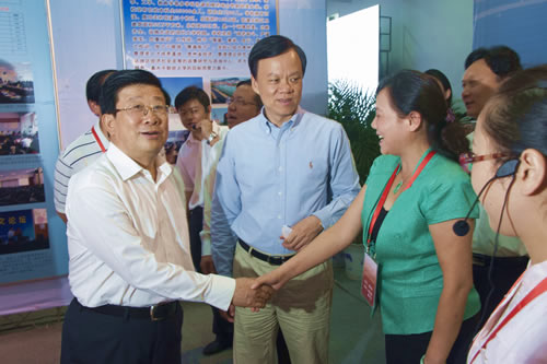 2012年10月,国务院原副总理李岚清(中)与我校原党委书记修耀华(左二)合影。