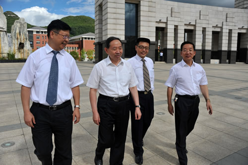 2015年8月,时任教育部袁贵仁部长(左二)在时任省教育厅霍健康厅长、我校党委书记褚光荣、校长蔡绍洪陪同下莅临我校视察。