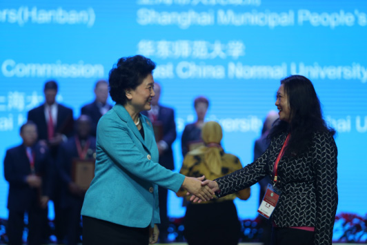 2015年12月,时任国家副总理刘延东为厄特孔院首任院长王小华颁发孔子学院先进个人荣誉证书和银质奖章