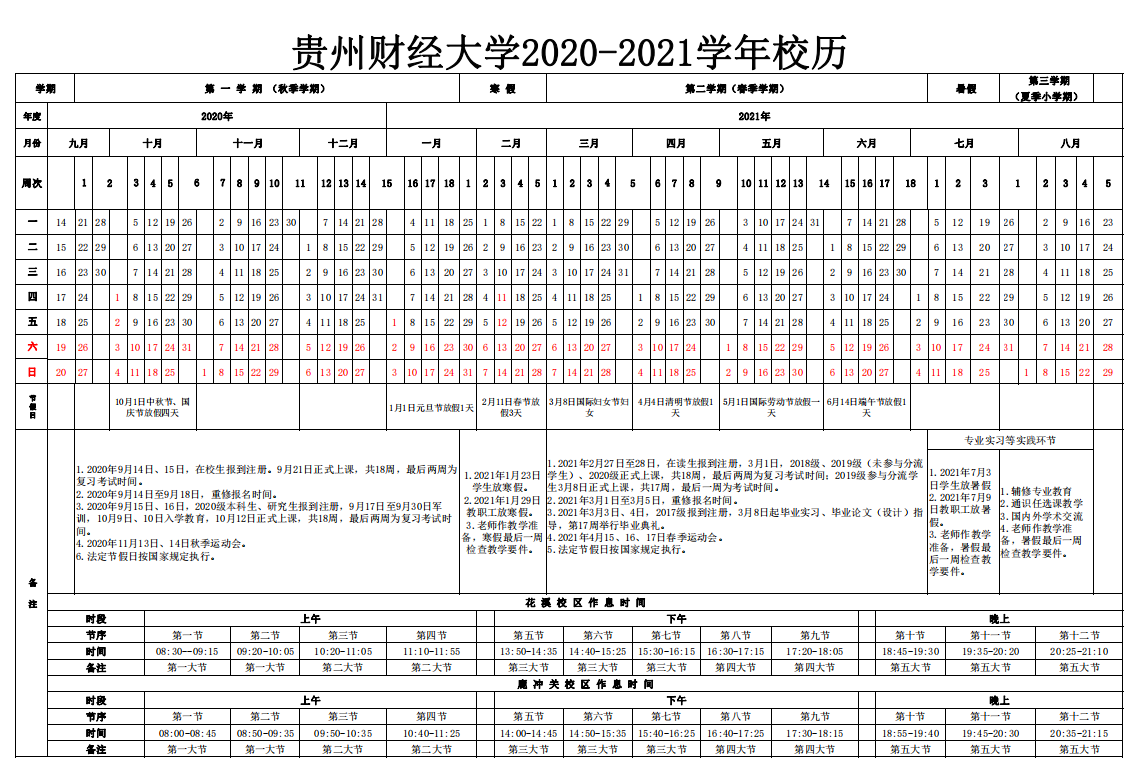 2020-2021学年校历