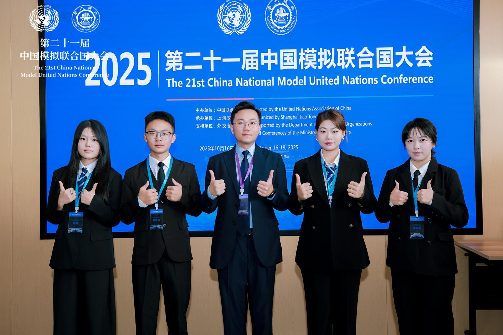 本网讯:(国际交流合作处 杨西航 图文报道)10月17日至19日,第二十一届中国模拟联合国大会在上海圆满落幕。本次大会由中国联合国协会主办、外交部国际司支持、上海交通大学承办。我校何德爽、陈梅、耿丽、周雨璇四位学子从全国100多所高校的400余名参会代表中脱颖而出,展现了贵财学子的卓越风采。其中,法学院2023级本科生何德爽在“联合国网络犯罪特设委员会”中的表现获评委高度认可,斩获“最佳潜力奖”,实现了我校在该赛事中零的突破。